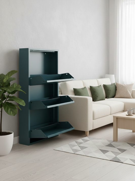 ארון הנעליים ממתכת המעוצב שלנו משלב עיצוב מודרני ונקי עם נוחות מקסימלית ושימוש יעיל בחלל.