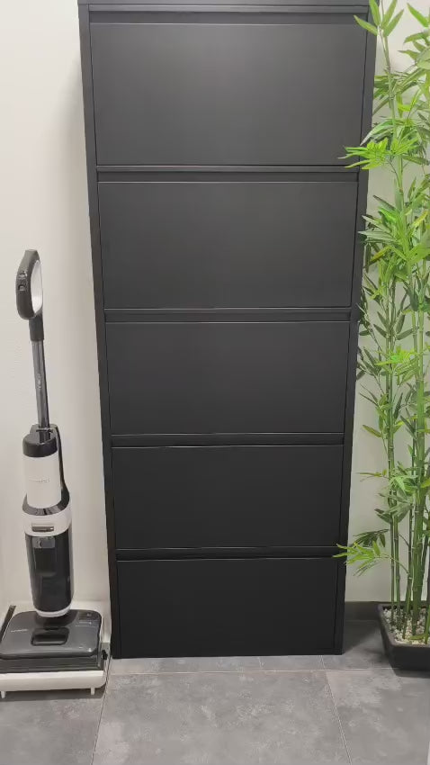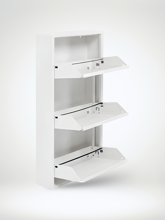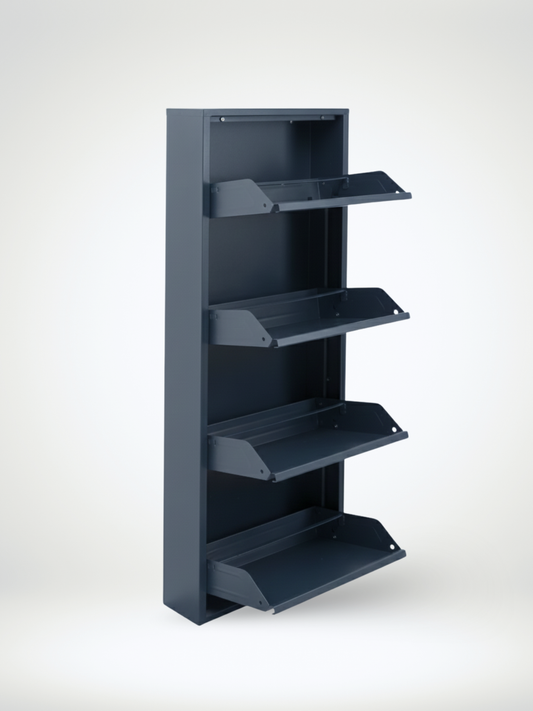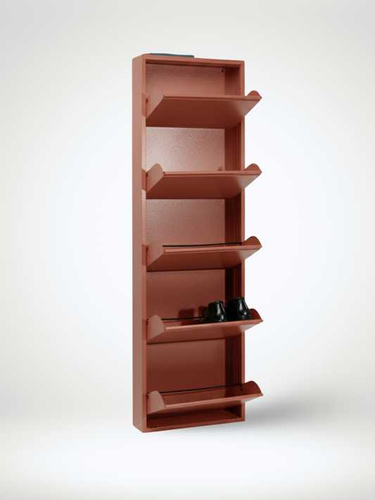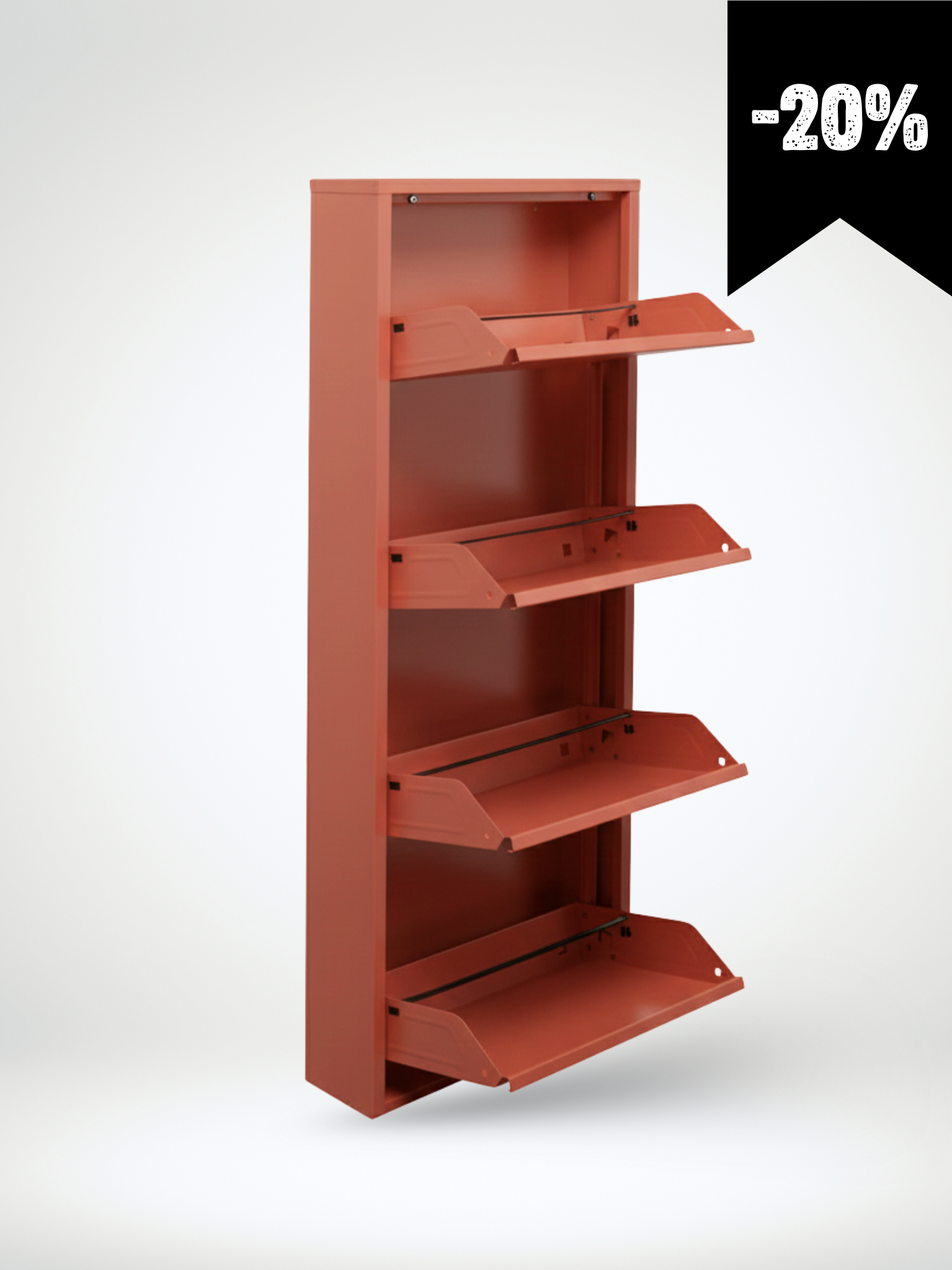 הדגם בנוי ממתכת איכותית ששומרת על איכות גבוהה למשך זמן רב, במבנה חכם שמנצל כל סנטימטר, שומר על סדר מוחלט בחלל ומציג את הנעליים בצורה נקייה ואסתטית. כל מגירה נפתחת בצורה חלקה, ומאפשרת גישה קלה ונוחה.