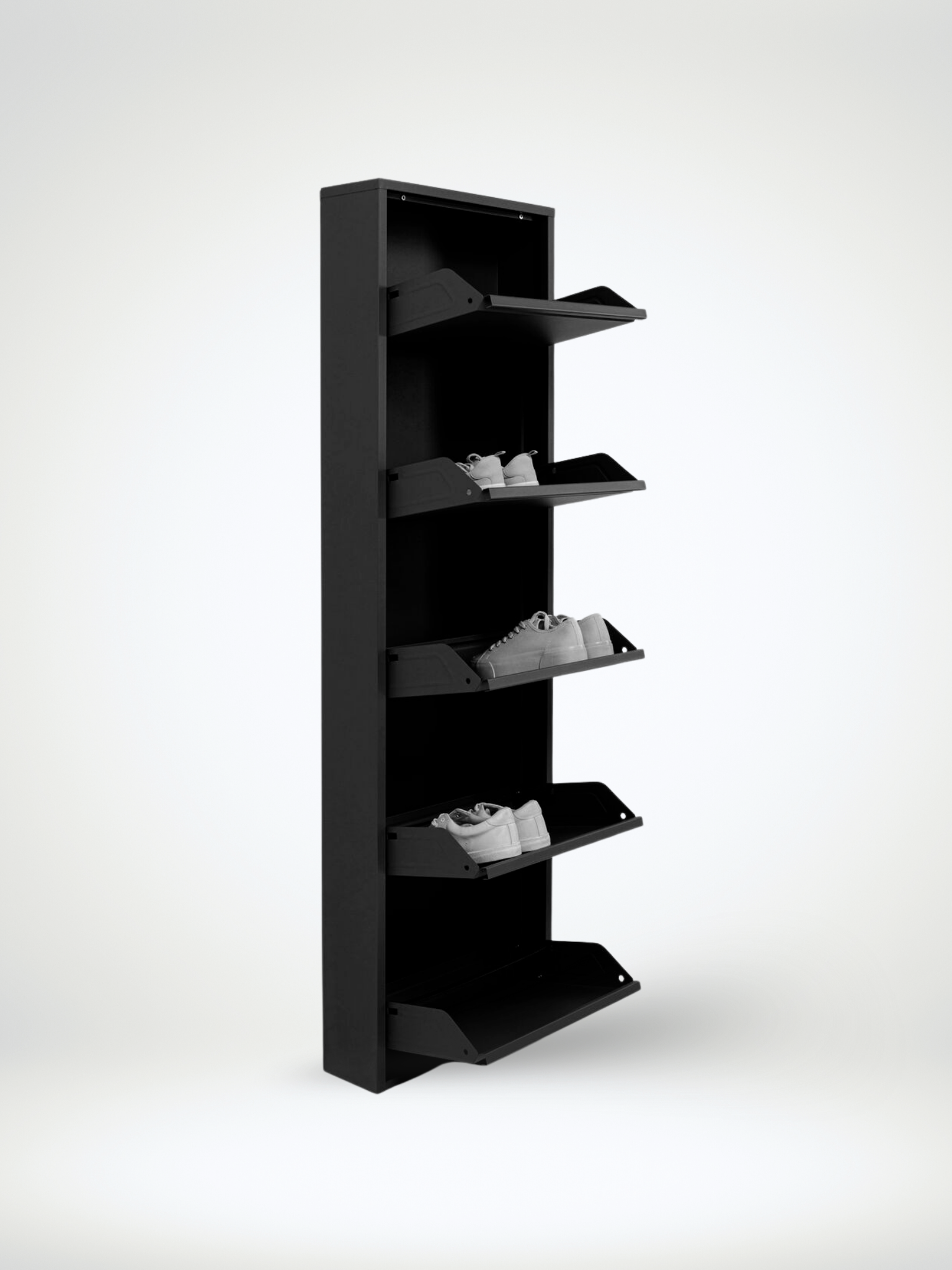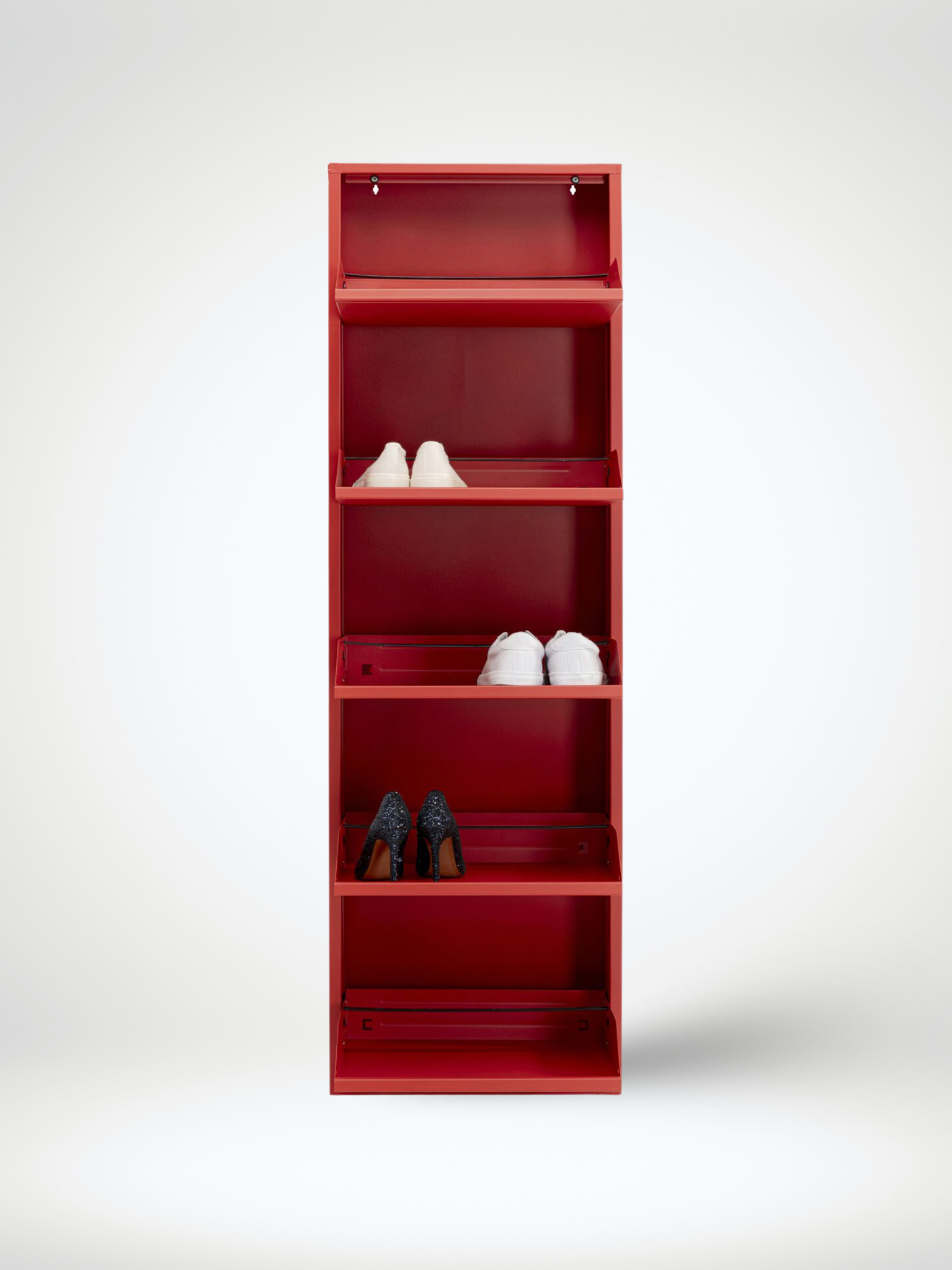 הדגם בנוי במבנה חכם שמנצל כל סנטימטר, שומר על סדר מוחלט בחלל ומציג את הנעליים בצורה נקייה ואסתטית. כל מגירה נפתחת בצורה חלקה, ומאפשרת גישה קלה ונוחה.